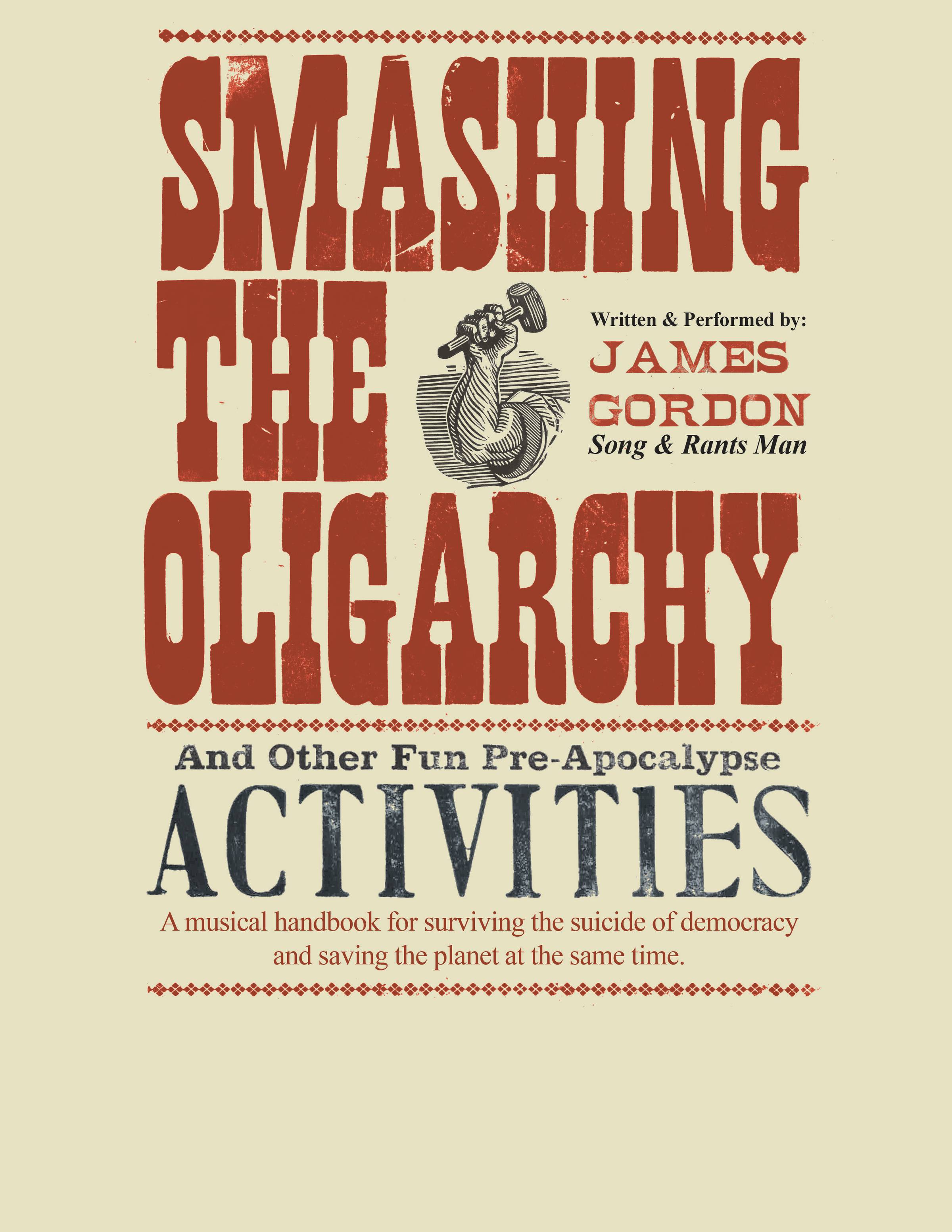 Oh and I'll also be touring late spring and summer with my one-dude musical "Smashing The Oligarchy and other fun Pre-apocalypse Activities" as a 50/50 fundraiser for community non-profit groups . Lots about it here: including the online version of it. https://jamesgordon.ca/new-one-man-show-smashing-the-oligarchy-booking-now